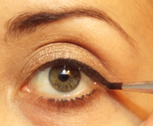 I used a small concealer brush and my L'oreal Infallible liner to line the upper lash line finishing with a small flick (small for me)